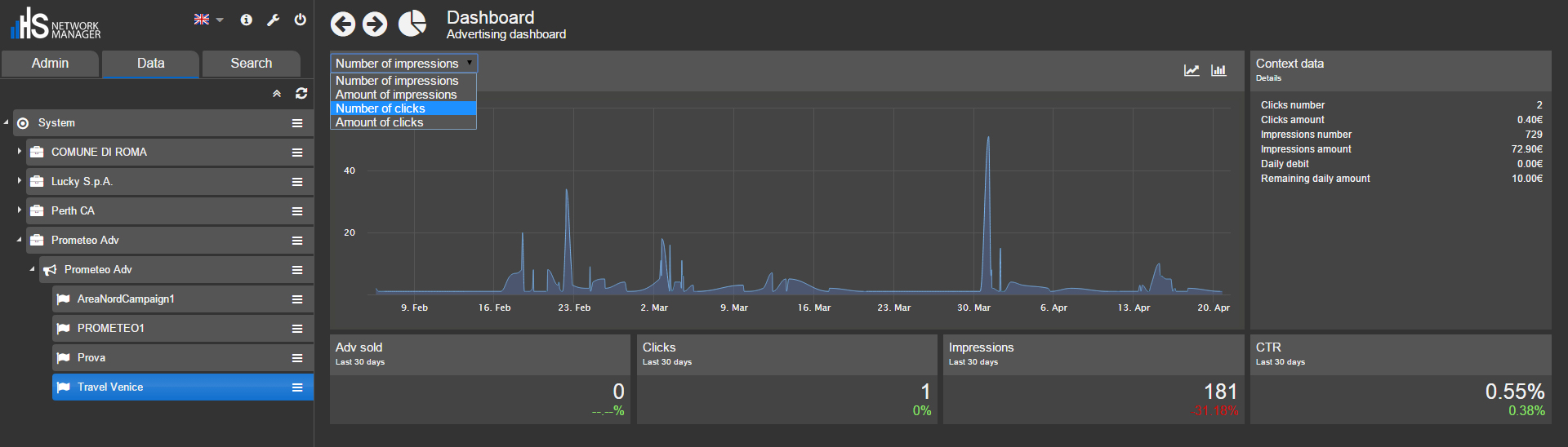 Το Ads Module λειτουργεί με φιλοσοφία πολλαπλών επιπέδων. Μπορείτε να διαχειριστείτε τις ρυθμίσεις καμπάνιας και την θεματολογία από το μενού “Διαφήμιση”. Ο μεταπωλητής του δικτύου μπορεί να δουλέψει απευθείας με τις καμπάνιες διαφημίσεων ή να εκχωρήσει την εργασία αυτή σε τρίτους, που δουλεύουν πάνω στο έργο, εξ’ ονόματός του ή εκ μέρους του. Σ’αυτό το σημείο εισάγεται και ο ρόλος του Διαφημιστή. Παραμένοντας σε επικοινωνία με τον εκάστοτε μεταπωλητή, είναι σε θέση να αναπτύξει την ιδανική διαφημιστική συνεργασία.