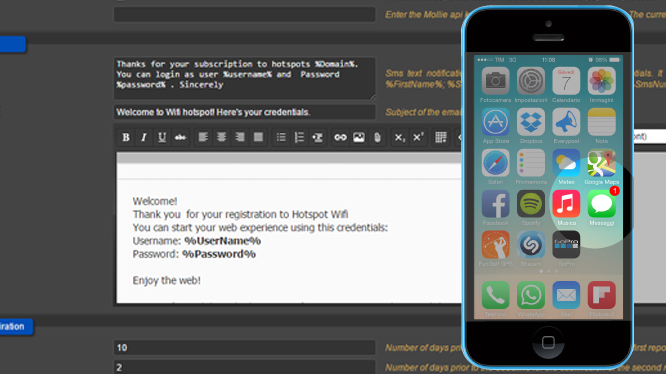 Η εγγραφή του χρήστη είναι δυνατό να γίνει απευθείας με SMS, έτσι ο χρήστης ζητά τα διαπιστευτήρια σύνδεσης του στο hotspot μέσω SMS. Σε διαφορετική περίπτωση, η συμπλήρωση της φόρμας εγγραφής, μπορεί να συμπεριλαμβάνει κάποια επιβεβαίωση μέσω SMS, την οποία λαμβάνει ο τελικός χρήστης. Δείτε το παρακάτω παράδειγμα: